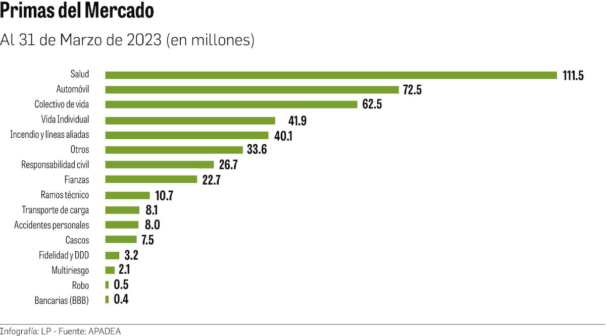 Los ramos de seguros de personas terminaron al primer trimestre con $224 millones en primas suscritas y una participación de 49.5%, frente a los ramos generales que representan $228 millones acumulados y una participación de 50.5%.