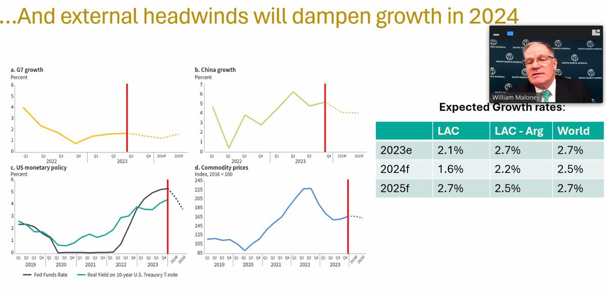 William Maloney, economista jefe del Banco Mundial para América Latina y el Caribe, dijo que todo apunta a que la economía de Panamá crecerá este año 2.5% pese a la pérdida de los ingresos por la minería y para el año 2025 se estima que alcance una tasa de 3.5%.