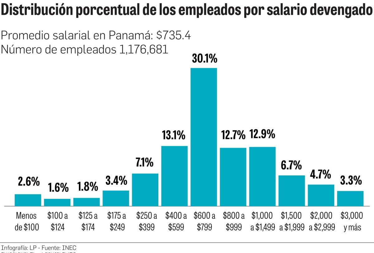 La mediana del salario en Panamá se ubicó en 735.4 dólares a nivel nacional, para agosto 2023, sólo 1% más de aumento en comparación con la medición anterior de abril de 2022, cuando estaba en 728.2 dólares mensuales. Así lo revela la Encuesta del Mercado Laboral publicada por el Instituto Nacional de Estadística y Censo (INEC).