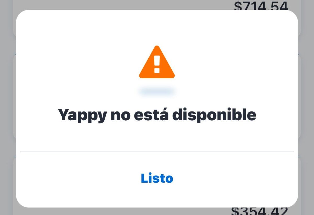 ⚠️ En este momento el app presenta intermitencias, lo que puede limitar tu experiencia al realizar pagos, transferencias y utilizar Yappy.