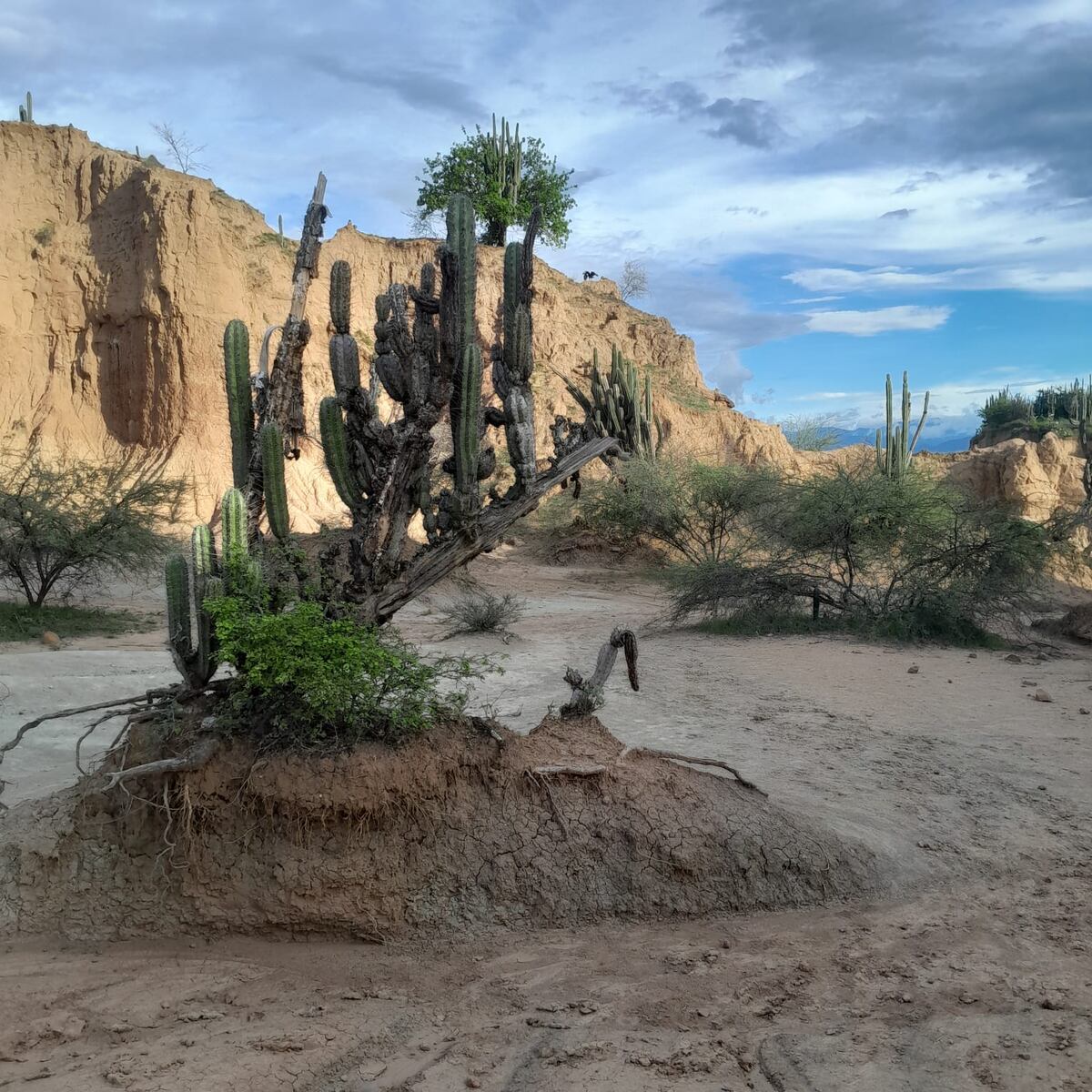Ubicado al norte del departamento del Huila, a unos 50 kilómetros de Neiva, la Tatacoa es un paisaje sorprendente, aunque su nombre puede llevar a confusión. Más que un desierto, se trata de un bosque seco tropical, donde la vida florece en formas inesperadas. Prueba de ello es la vegetación que resiste las condiciones áridas, como los melocactus, y las especies animales que han sabido adaptarse a su clima extremo.