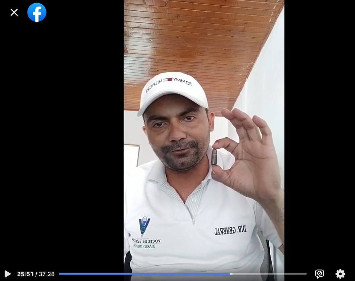 En su video del 21 de julio, el periodista, de 37 años, habló de la amenaza más reciente que había recibido días antes, el día 2 de julio, en el baúl de su motocicleta. Frente a la cámara, exhibió la bala de una pistola, acompañada de una carta anónima. “Sabemos todos los movimientos que haces dónde vas, a qué hora te levantas, a qué hora te acuestas”, leyó el periodista, con una voz entrecortada, pero firme. “Ya sabemos dónde tomas trago en Montelíbano, mejor dicho sabemos todo de ti, no te vamos a perdonar lo que estás haciendo. Así, que ya sabe parcero, este resto de proveedor de esta 9 (milímetros) está listo esperando por ti”.
