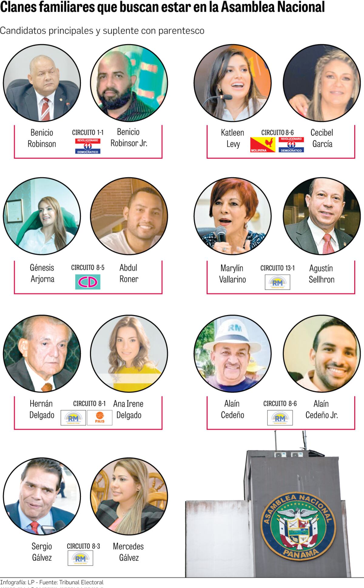 Junto a Robinson y Gálvez también se erige la figura del diputado Alaín Cedeño, quien busca consolidar a uno de sus hijos en la Asamblea Nacional, como parte del el circuito 8-6 (24 de Diciembre, Las Garzas, Mañanitas, Pacora, Pedregal, San Martín, Tocumen).