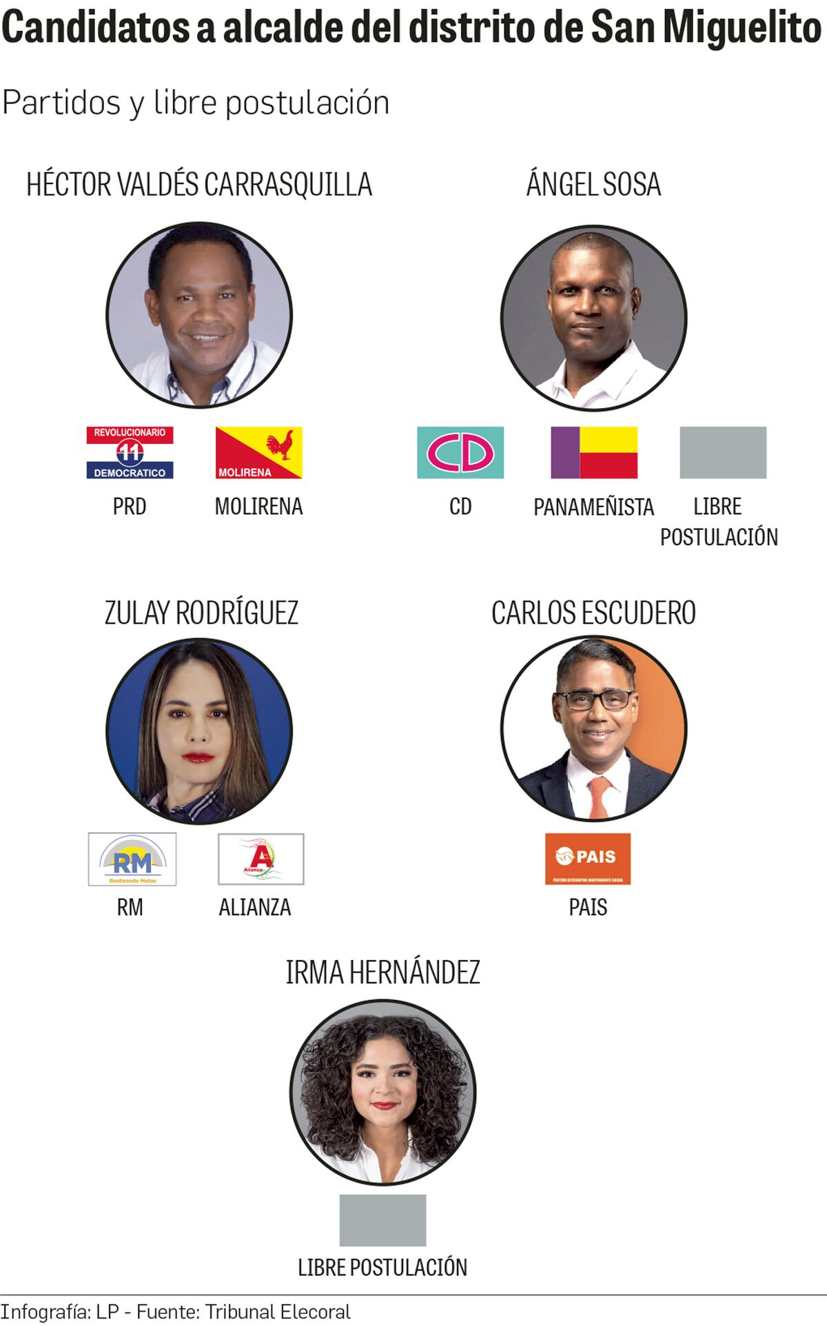 Del otro lado, aparecen rostros políticos nuevos como el de Irma Hernández, quien se postuló a la alcaldía por la libre postulación. Lo mismo hizo Ángel Sosa, quien, además de correr por la libre postulación, tiene las banderas de Cambio Democrático y el Partido Panameñista.
