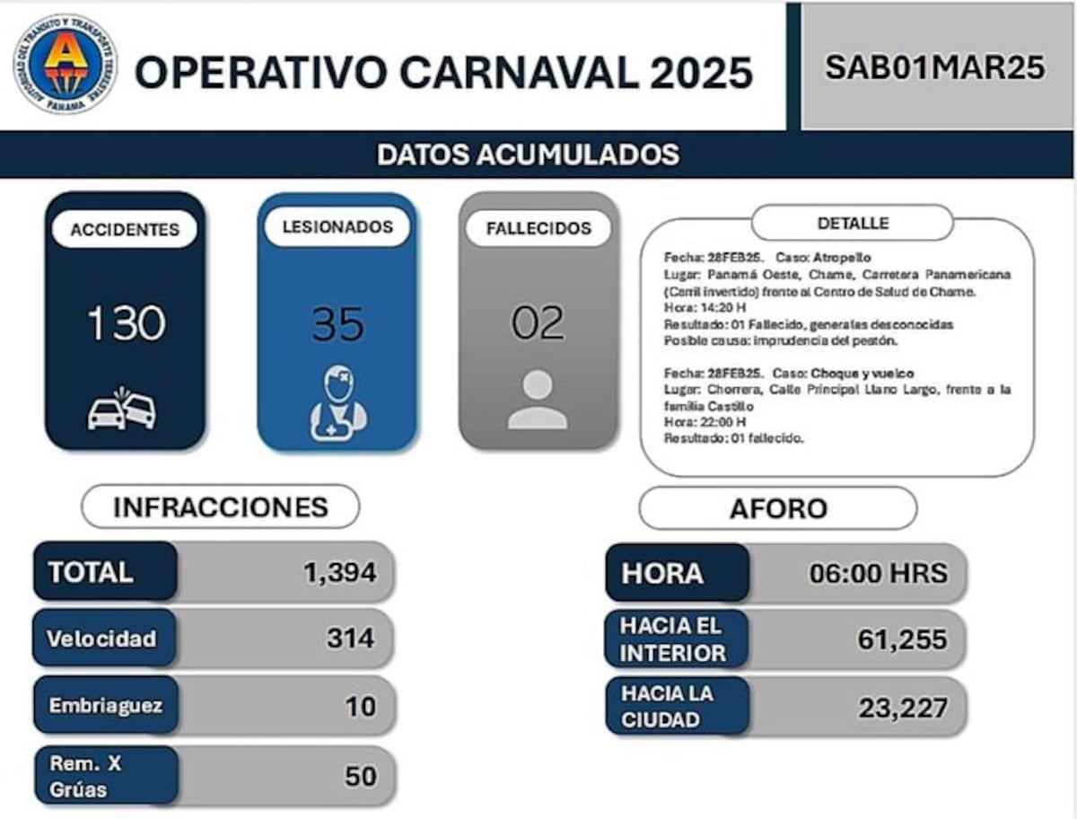 Igualmente, los organismos de seguridad informaron que el aforo de vehículos que han viajado hacia el interior del país hasta la 6:00 a.m de hoy sábado 1 de marzo es de 61 mil 255.