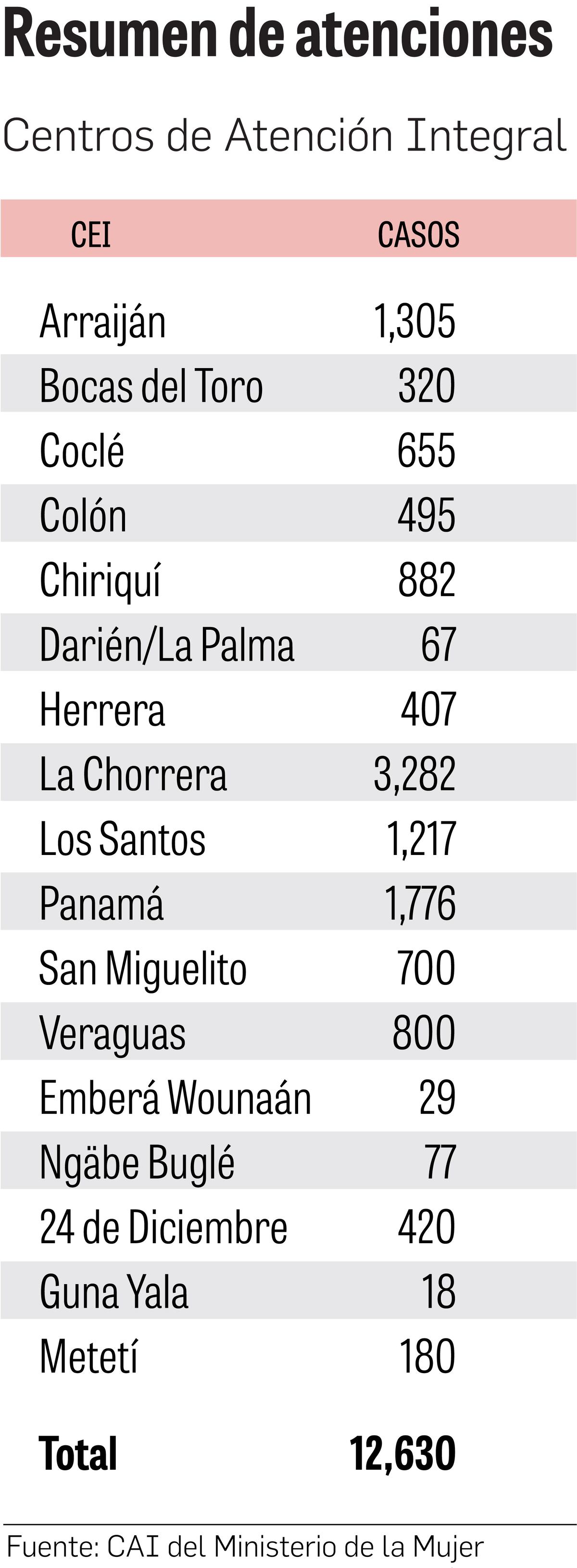 Los CAI donde más casos se reciben están en los distritos de La Chorrera y Arraiján, en la provincia de Panamá Oeste; los distritos de Panamá y San Miguelito, en la provincia de Panamá; así como en las provincias de Los Santos, Chiriquí y Veraguas. En estos centros el proceso comienza con una evaluación por parte de trabajadoras sociales para identificar las necesidades de las solicitantes del apoyo. Seguidamente, se brinda atención con psicólogos y orientación en temas legales.