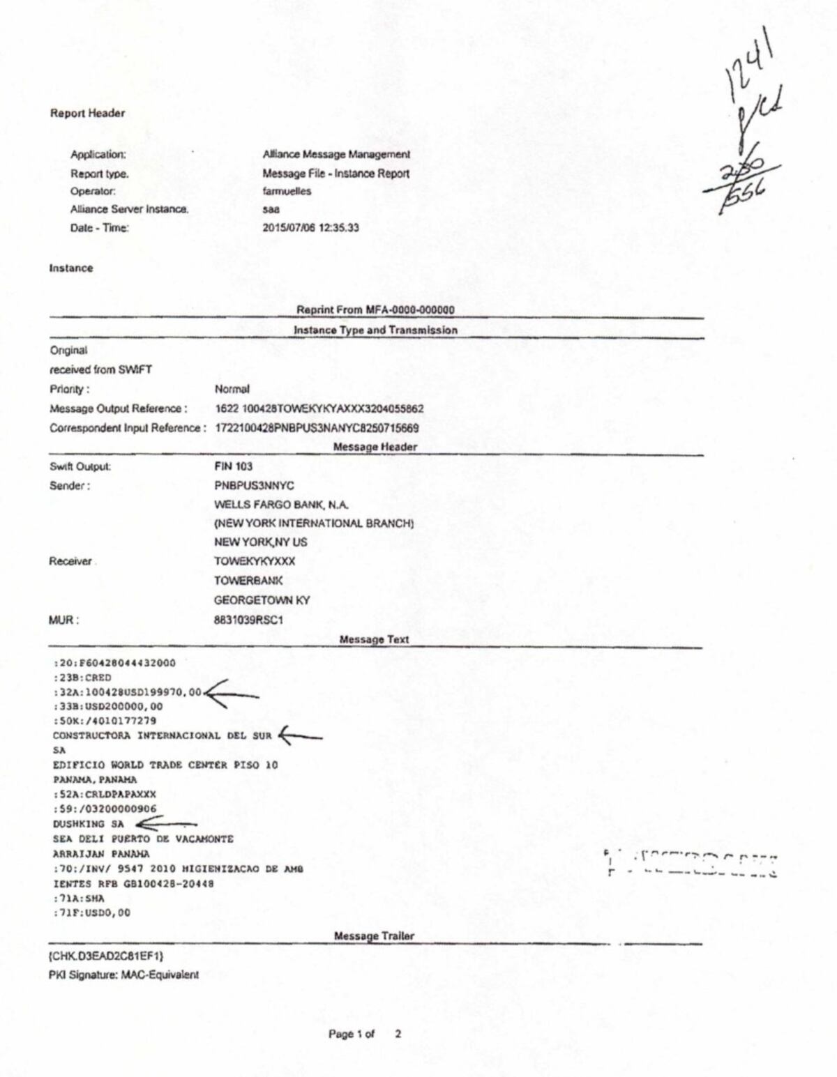 Los documentos probaban que las sociedades de los Papadimitriu habían recibido en Panamá cientos de miles de dólares de Constructora Internacional del Sur (Panamá) y de Klienfeld Services Ltd. (Antigua y Barbuda). Esta última llegó a pagar, al menos, unos $200 millones en coimas a funcionarios latinoamericanos a través de la Banca Privada d’Andorra (BPA).