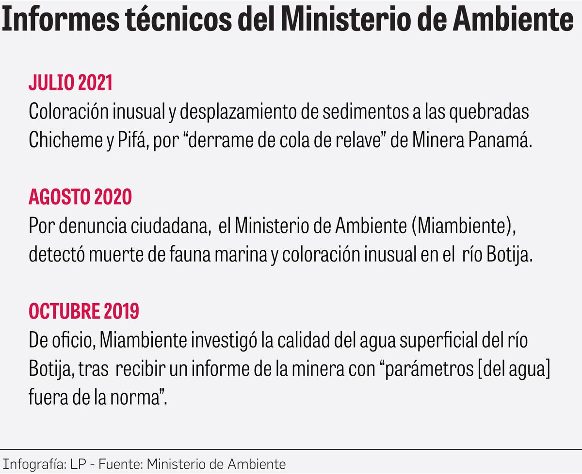 Según la bitácora proporcionada por la entidad a la Corte, el registro de inspecciones de Miambiente a la minera se llevó hasta agosto de 2021. Para ese mismo mes, La Prensa también había solicitado los informes completos a Miambiente, pero tampoco los proporcionó.