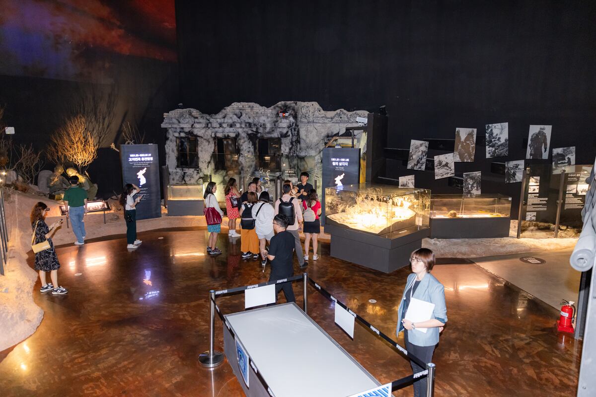 El salón alberga varias exhibiciones permanentes como la sala de la guerra, la sala de las Naciones Unidas aliadas, igualmente muestra la indumentaria que se usó durante el conflicto bélico, además de varias maquetas donde se puede apreciar cómo era Busan en esa época y donde estaban apostadas las tropas aliadas y la importancia estratégica del puerto de esa ciudad.