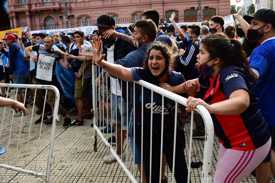 Decenas de miles de personas pasaron la noche en vigilia en la Plaza de Mayo, frente a la sede gubernamental, entre cánticos de homenaje para despedir a su ídolo.