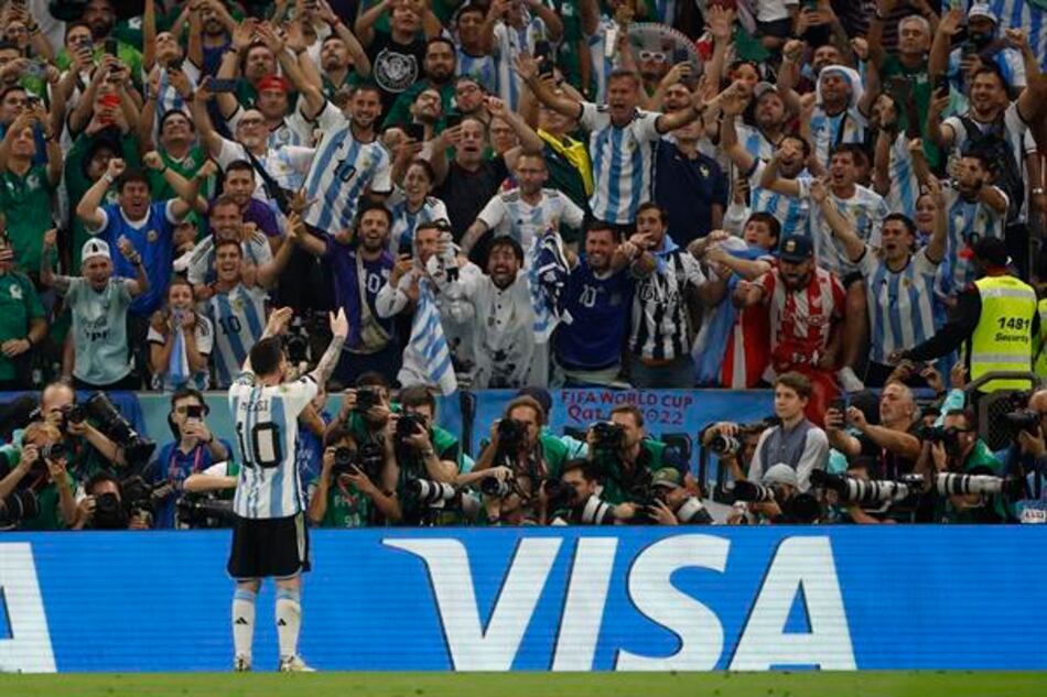 Con el pase de Argentina a cuartos de final al vencer a Australia por 2-1, los predios del estadio Ahmad Ben Ali fueron una fiesta. El metro estuvo abarrotado de aficionados y constantemente se escuchaba el nuevo canto de los argentinos en el que plasman su deseo de ganar su tercera co Copa del Mundo y hacen mención del apoyo desde el cielo de Maradona para Lionel Messi.
