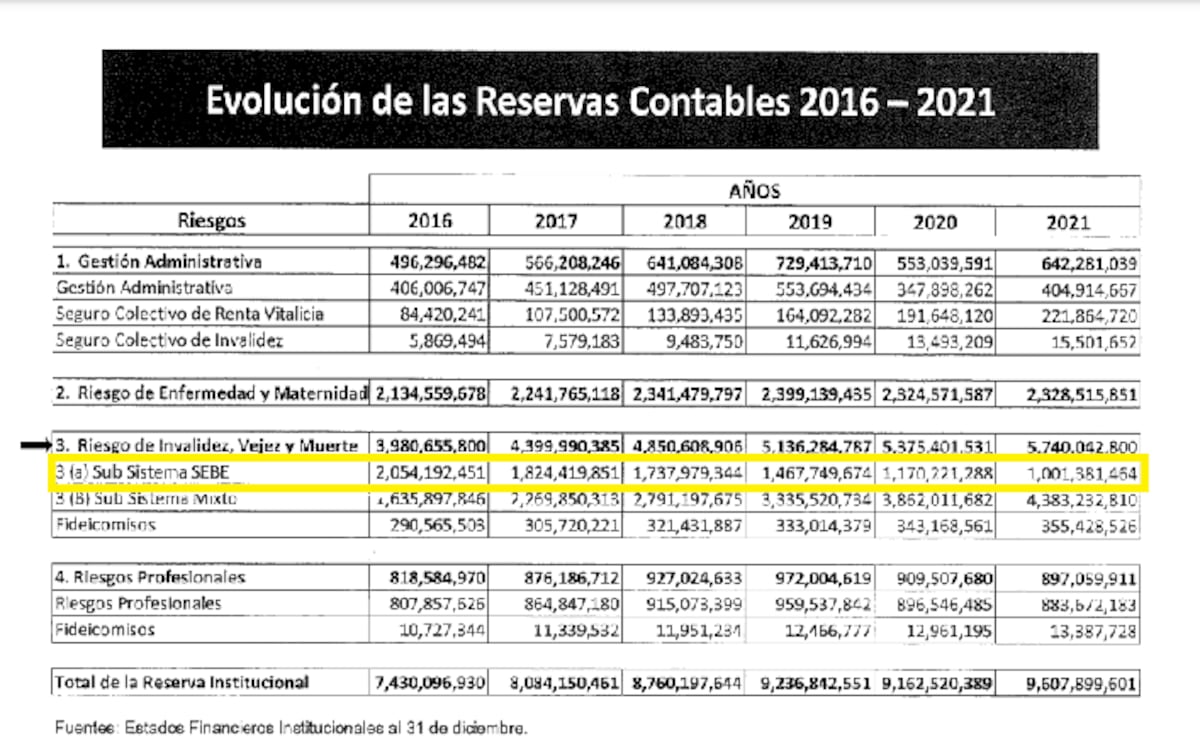 Prueba de ello es que al cierre de 2021 las reservas institucionales del subsistema de pensiones terminaron en $1,001 millones, lo que significó una reducción de 14% o $169 millones al comparar el resultado con el del año 2020.