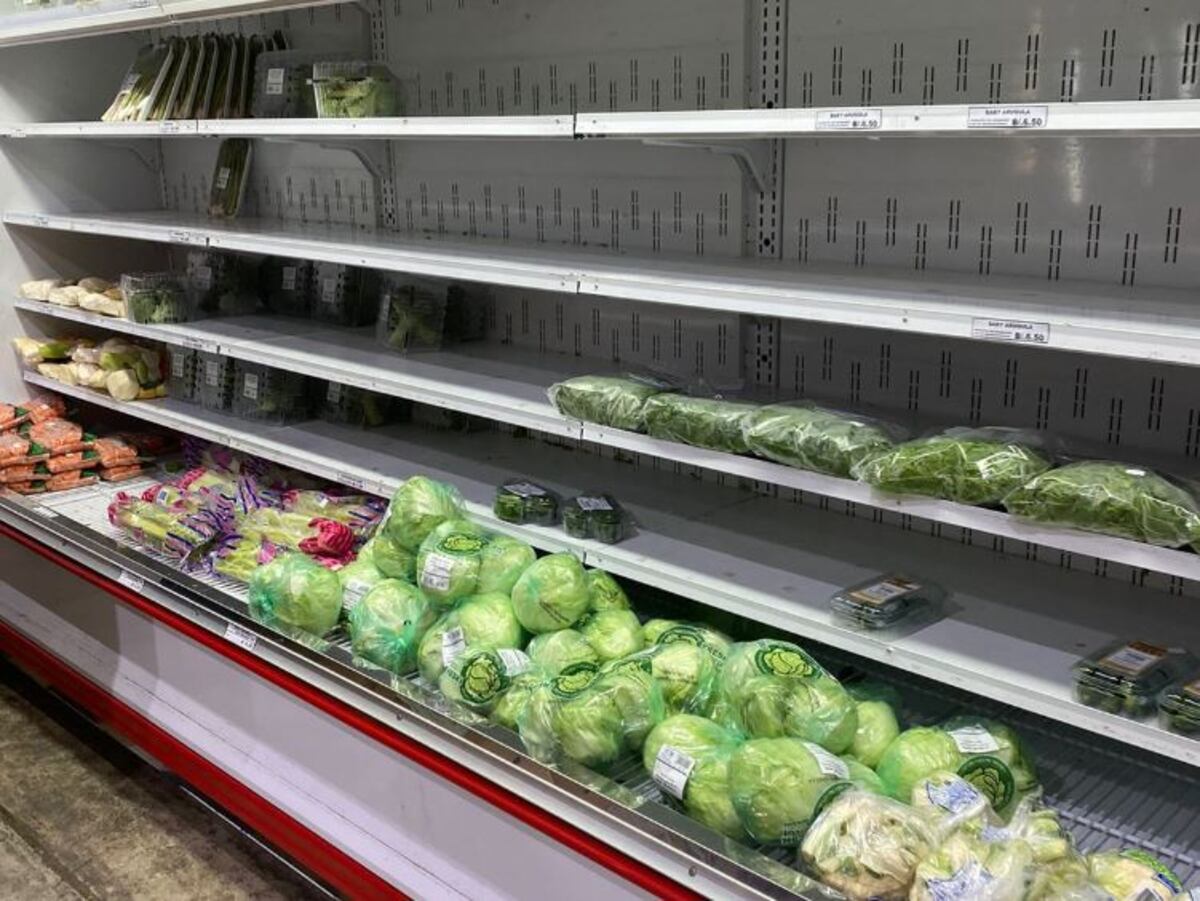 No hay disponibilidad de producción agrícola en los supermercados, al punto que en algunas tiendas ya se les pide a los consumidores racionar la cantidad de pimientos, tomates o lechugas que llevan a casa.