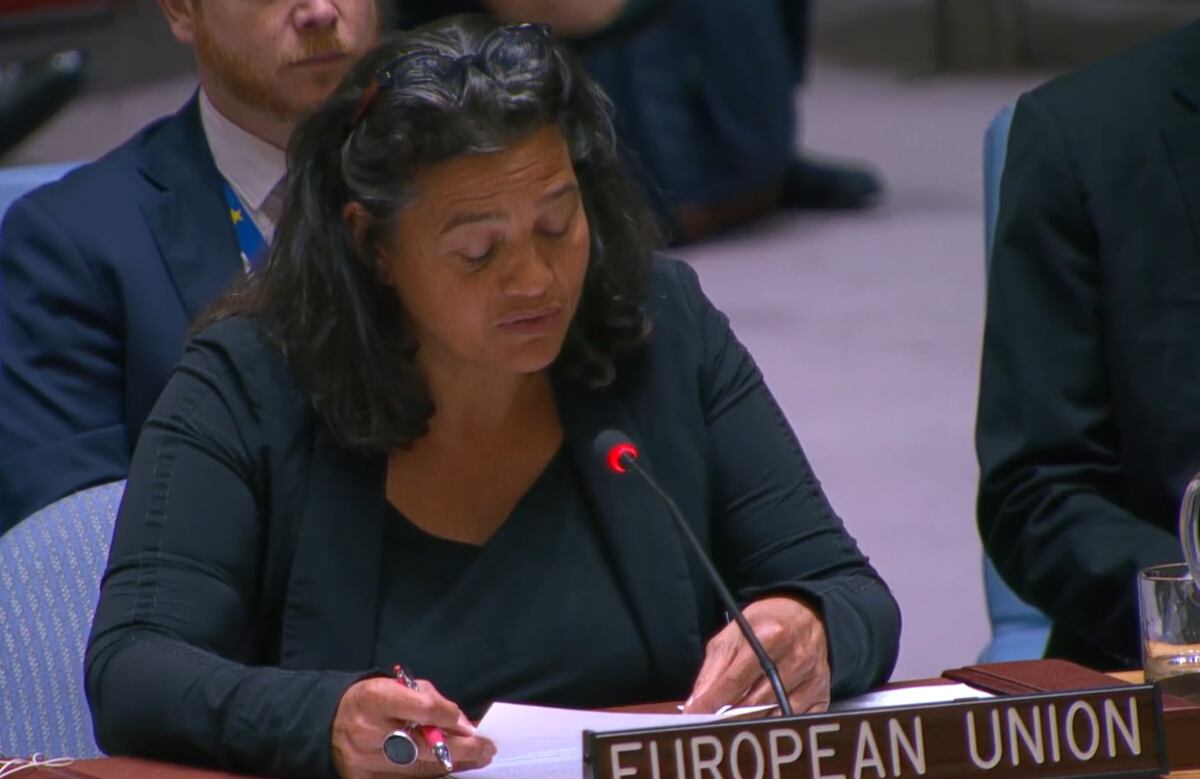Interviene la representante de la Unión Europea y los estados miembros de ese bloque. Hace un repaso de las medidas que se han tomado para garantizar la seguridad marítima y manifesta la preocupación por los atentados y ataques contra buques comerciales.