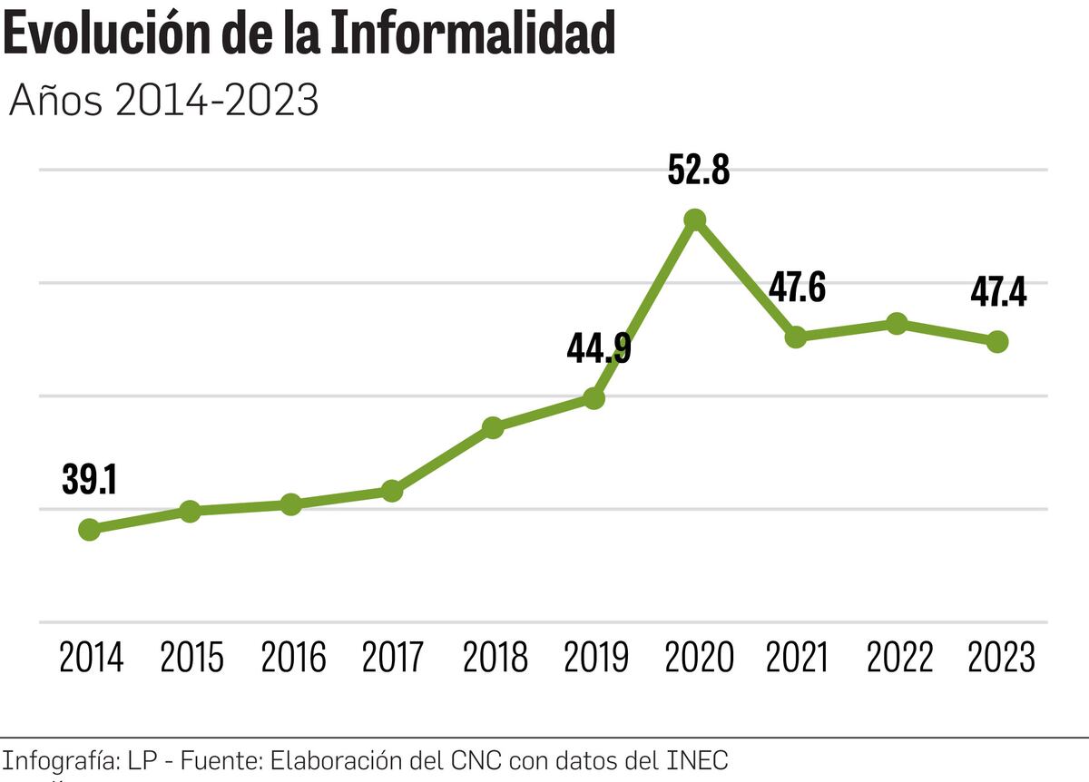 La tendencia de la informalidad se ha mantenido por encima del 45% en los últimos cinco años de acuerdo al análisis del CNC, lo que “deja en evidencia que es un problema que persiste y se ha venido agravando tanto laboral como empresarial”.