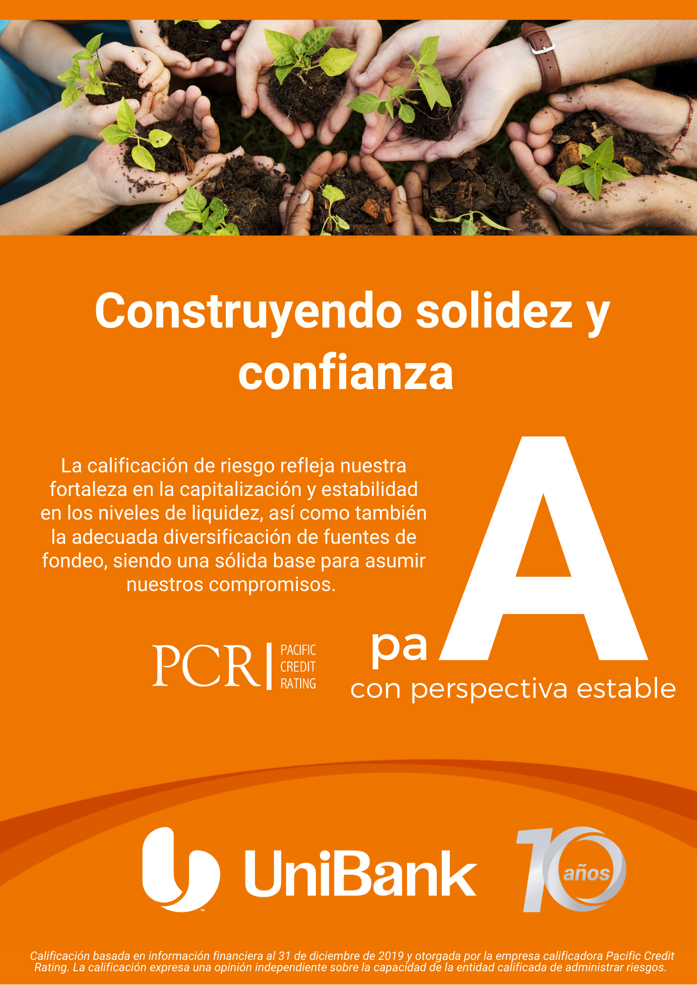 UniBank es un banco organizado y constituido bajo la legislación panameña, operando con una Licencia General Bancaria que brinda servicios financieros hacia la banca empresarial, banca personal y banca privada. Es un banco con bases sólidas, manteniendo activos por USD $536.6 millones y cuenta desde 2018 con una calificación de riesgo de paA, con perspectiva estable, otorgada por la agencia calificadora Pacific Credit Rating, en la que destacan: fortaleza en la capitalización y estabilidad en los niveles de liquidez, así como también la adecuada diversificación de fuentes de fondeo, siendo una sólida base para asumir sus compromisos.