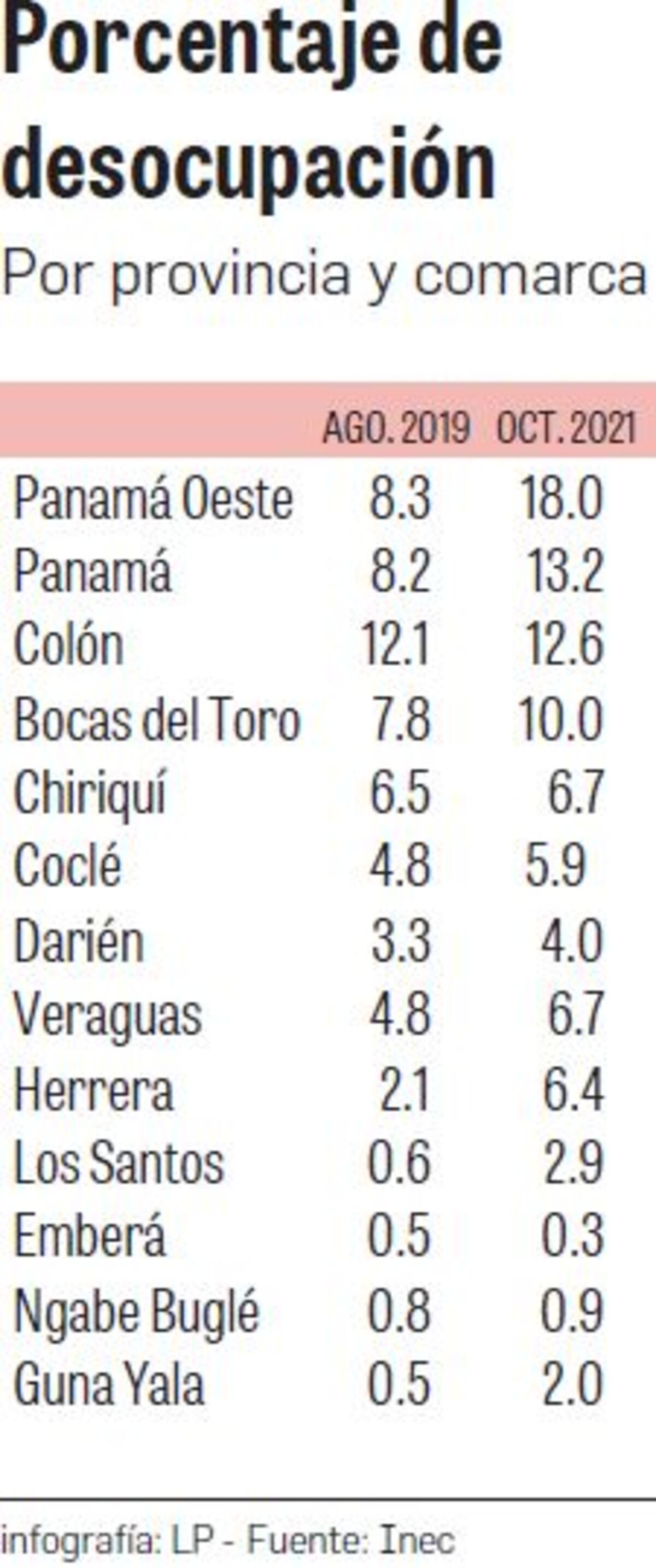 En el análisis por grupos de edad persisten las condiciones de altas tasas de desempleo en la población juvenil; el cual, para el 2019, registró un 15%, mientras que en octubre de 2021 fue de 21.3%, duplicando la tasa de desocupación nacional. La tasa de desempleo nacional se ubicó en 11.3% o 222,080 personas, según el INEC.