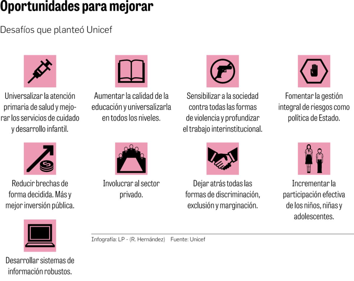 El diagnóstico que les presentó Unicef –añadió– servirá para que todos los sectores que están relacionados con el tema tomen las decisiones, como sociedad y Estado, para contribuir a mejorar y proteger los derechos de los niños y adolescentes.