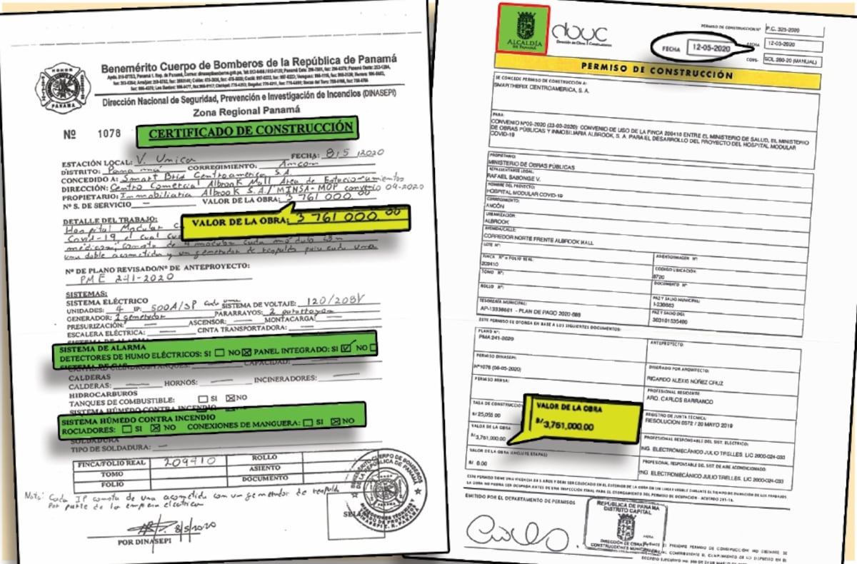 Irregularidades preocupantes, como la falta de rociadores contra incendios y un posible sobreprecio de $3.2 millones tendría la construcción del hospital de Albrook, según los formularios de construcción y ocupación de la Dirección de Obras y Construcciones (DOyC) del Municipio de Panamá y del Cuerpo de Bomberos. Ambos documentos reflejan que el valor de la obra es de $3.7 millones. Sin embargo, SmartBrix Centroamérica pretende cobrar por su construcción $7 millones.