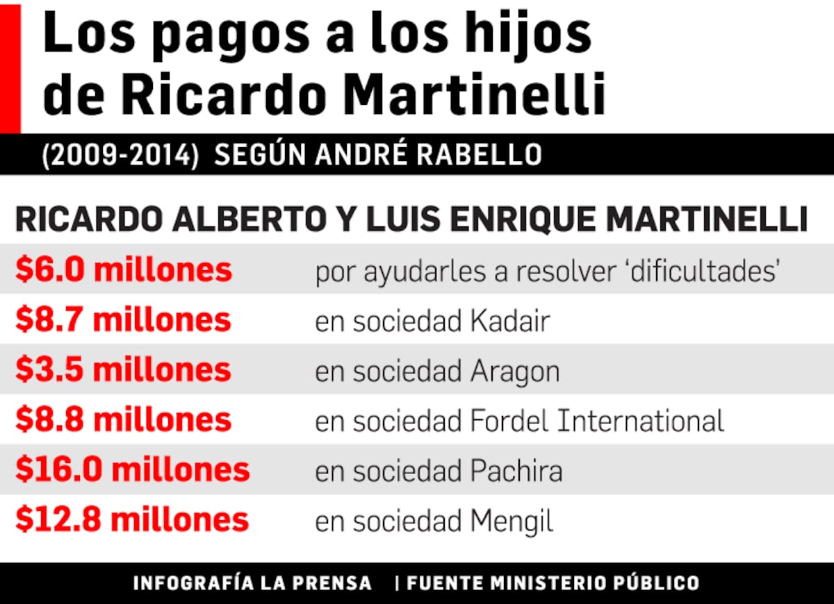 Rabello confesó haber pagado más de $50 millones a Ricardo Alberto y Luis Enrique Martinelli Linares –de actual paradero desconocido–, a través de sociedades ubicadas en distintas jurisdicciones.