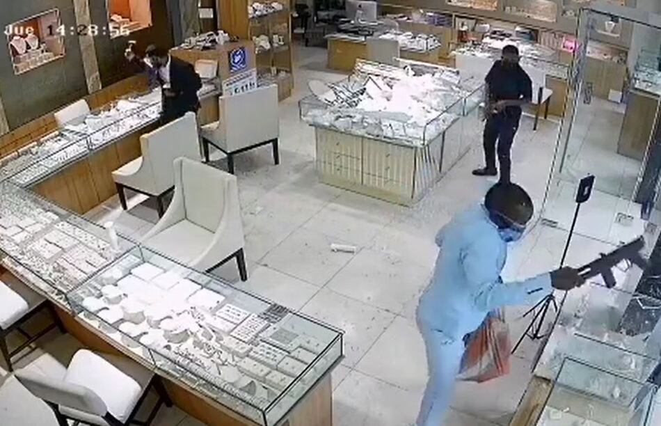 Luego, los otros sujetos sorprendieron e hirieron al vigilante que estaba en la entrada e ingresaron a la joyería para cometer el robo.
