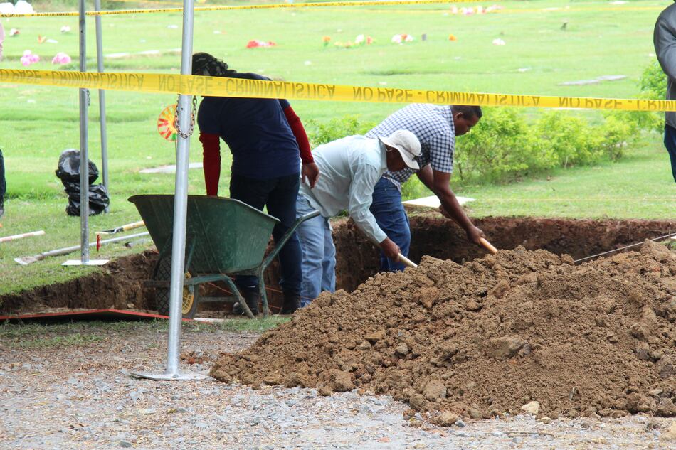 Por el momento, cinco restos han sido exhumados y trasladados a la morgue judicial, mientras que otros cinco están físicamente en las fosas y “donde se seguirá con los trabajos para la ubicación de otros féretros”, informó el Ministerio Público en un comunicado.
