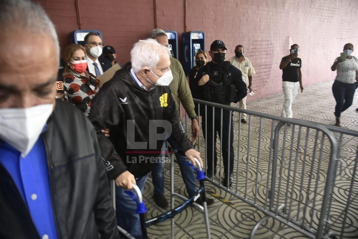 Martinelli llegó a las 8:38 a.m. y caminó desde su vehículo hasta la sala de audiencia utilizando una andadera. El paseíllo lo hizo escoltado por varios diputados de Cambio Democrático (CD), como Yanibel Ábrego y Marylín Vallarino. También estaban en el lugar Mayín Correa, Hernán Delgado, Leopoldo Benedetti y Dalia Bernal.