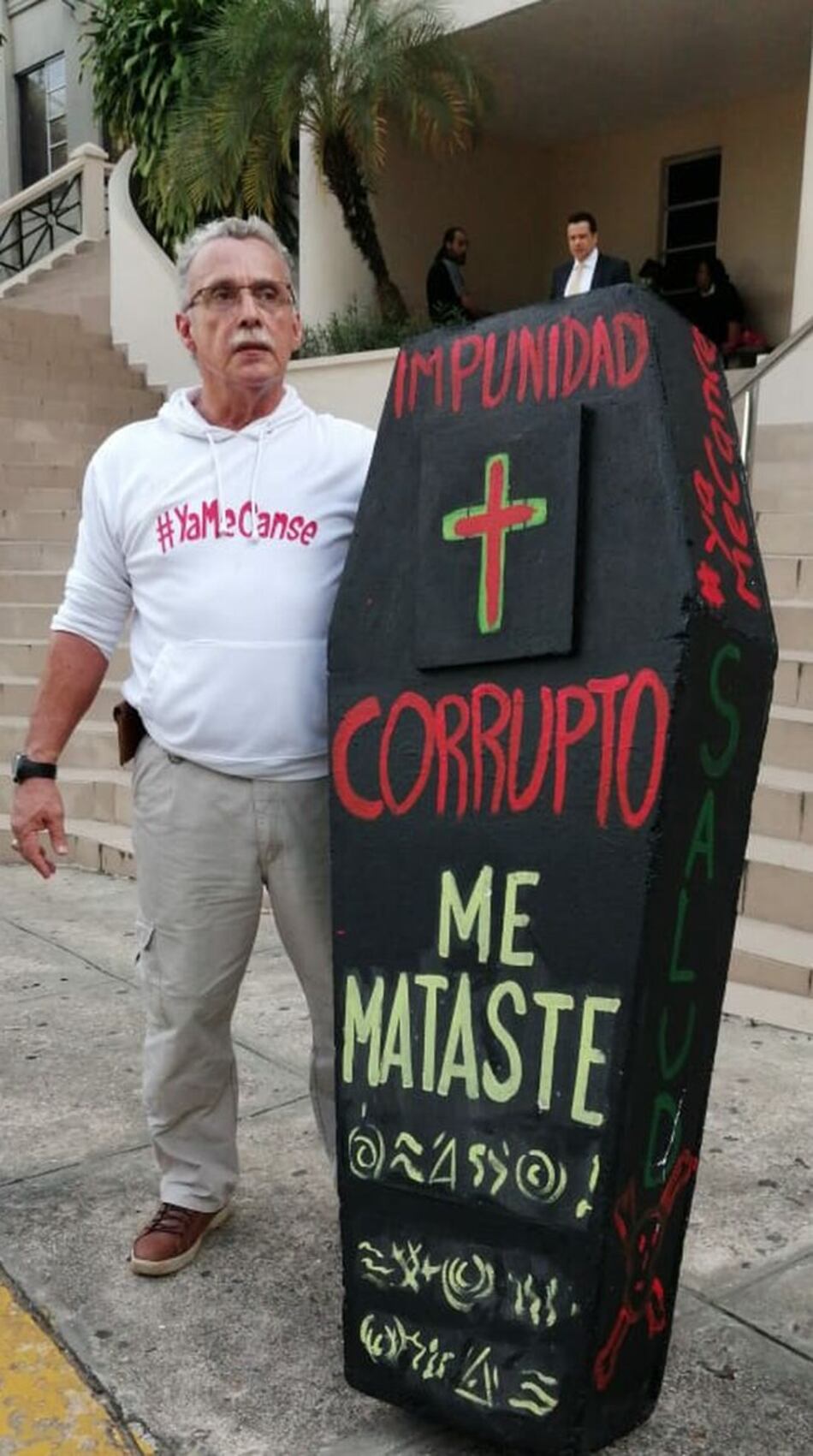 No obstante, el que salió fue Harry Díaz, quien fungió como magistrado fiscal del proceso seguido al expresidente Ricardo Martinelli por presunto espionaje político y peculado. Alguien le arrojó una sustancia amarilla mezclada con agua; luego, los propios manifestantes le facilitaron un pañuelo, para que se limpiara.