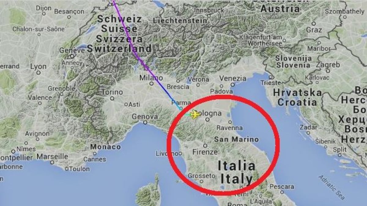 Según han indicado a La Prensa fuentes de la terminal de aviación general del aeropuerto Guglielmo Marconi en Bologna en el avión procedente del aeropuerto de Shannon, en Irlanda, viajan solo los pilotos.