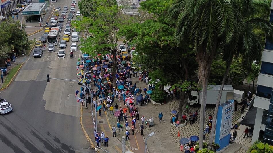Desde el mediodía, los docentes se congregaron en los alrededores de la iglesia del Carmen, en la vía España, para protestar contra la Ley 462 de febrero de 2025, que reforma la Caja de Seguro Social, además de participar en una reflexión religiosa. A la marcha de los docentes se unieron también los trabajadores del Suntracs (Sindicato Único Nacional de Trabajadores de la Industria de la Construcción y Similares), quienes manifestaron su apoyo a las demandas del sector educativo."