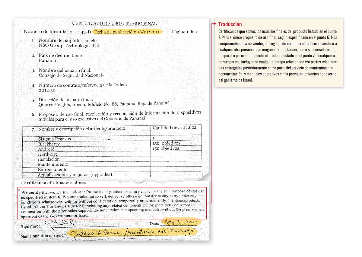Durante el gobierno de Martinelli se pagaron cerca de $8 millones por la máquina pinchadora Pegasus, que tenía como propósito, según el certificado de uso, “la recolección y recopilación de información en dispositivos móviles para el uso exclusivo del Gobierno de Panamá”.
