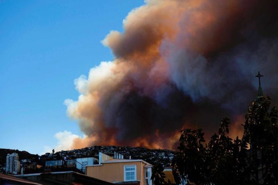 Las altas temperaturas y el fuerte viento contribuyeron a aumentar la extensión de este nuevo incendio que afecta uno de los cerros del pintoresco puerto de Valparaíso, uno de los lugares turísticos más visitados de Chile y cuyo casco histórico fue declarado Patrimonio de la Humanidad. La ciudad está a unos 120 km al oeste de Santiago.