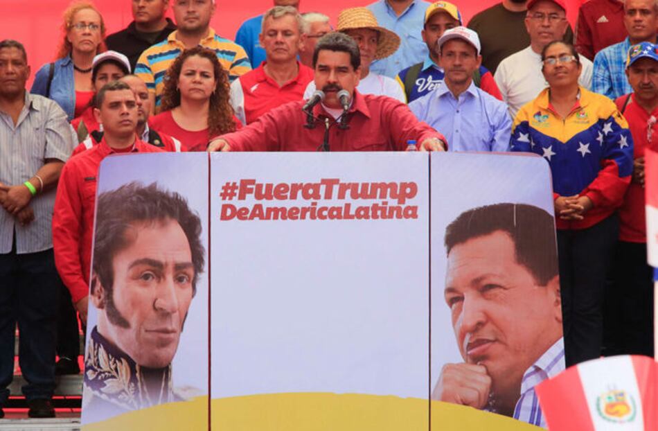 "Trump go home, que se escuche hasta Washington", gritó Maduro, en coro con miles de simpatizantes, vestidos de rojo, que marcharon en rechazo a la advertencia hecha el pasado viernes por el presidente estadounidense.