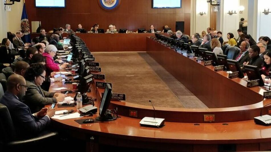 La resolución fue presentada por Colombia y secundada por Argentina, Brasil, Canadá, Chile, Estados Unidos, Guatemala, Panamá, Paraguay y Perú. Fue aprobada con 19 votos a favor, cinco en contra, 8 abstenciones y dos ausencias.