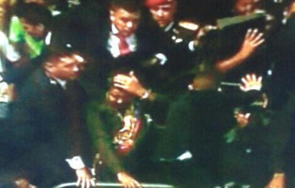 En la última toma de la transmisión, obligatoria para todas las televisoras y radios del país, se puede ver a la seguridad tratando de evitar que Maduro fuera impactado por alguno de esos objetos, aunque luego se le puede ver limpiándose algo del cabello. No está claro qué le lanzan.