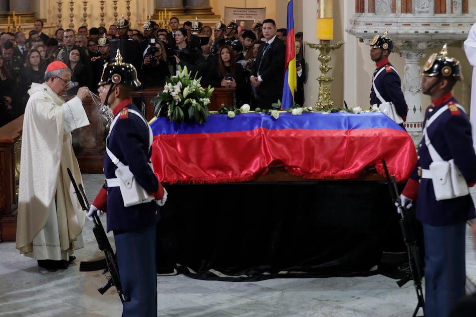 La eucaristía fue oficiada por el arzobispo de Bogotá, el cardenal Luis José Rueda, en presencia de los expresidentes César Gaviria (1990-1994), Ernesto Samper (1994-1998) y Juan Manuel Santos (2010-2018), así como de la exvicepresidenta Marta Lucía Ramírez, pero con la ausencia total de representación del Gobierno del presidente Gustavo Petro por petición de la familia.
