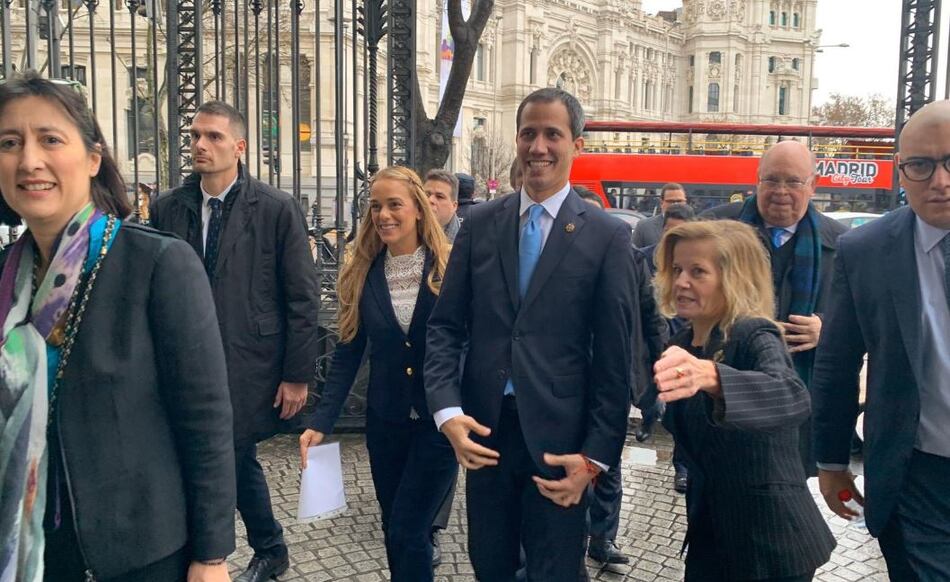 Llegado en medio de una gira europea, a Guaidó lo acompañaban en Madrid simpatizantes y opositores venezolanos radicados en la capital española, como Lilian Tintori, esposa del líder Leopoldo López refugiado en la residencia del embajador español en Caracas, y Antonio Ledezma, exalcalde de Caracas.
