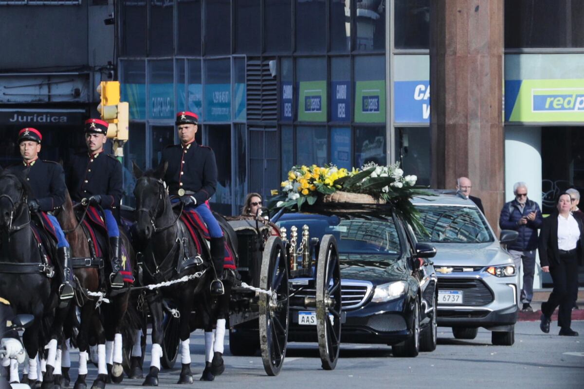 Los restos del exmandatario partieron a las 10:00 hora local (13:00 GMT) desde la Torre Ejecutiva de la capital uruguaya en un cureña, un transporte similar a una carreta y utilizado en las ceremonias de honores fúnebres, tirada por seis caballos del Ejército.