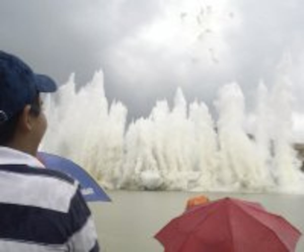 En un acto que estuvo destacado por el nacionalismo, la desorganización, el sol, y luego la lluvia, miles de panameños observaron cómo el presidente de la República, Martín Torrijos, accionó los detonadores de dos cargas de 32 mil libras de explosivo que marcaron el inicio de los trabajos de ampliación del Canal de Panamá.