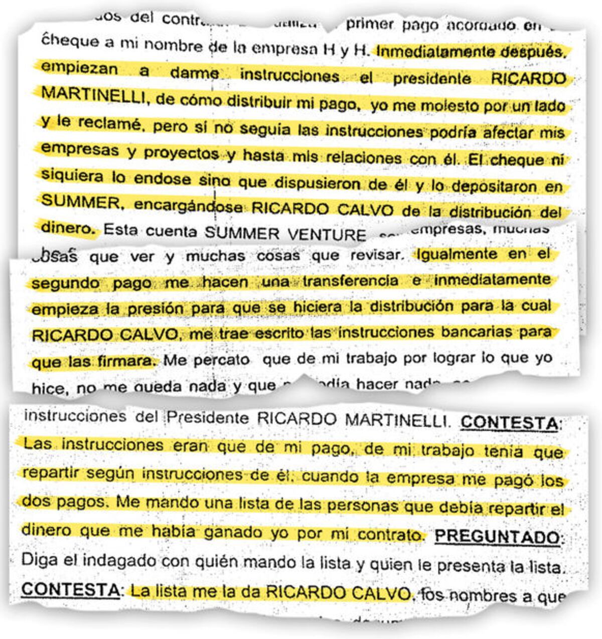 En ellos, Virzi deja constancia de las personas que recibieron pagos por instrucción de Martinelli, producto de su contrato con H&H. Investigaciones judiciales adelantadas por este caso revelan que parte del círculo cero de Martinelli fueron l os beneficiarios.