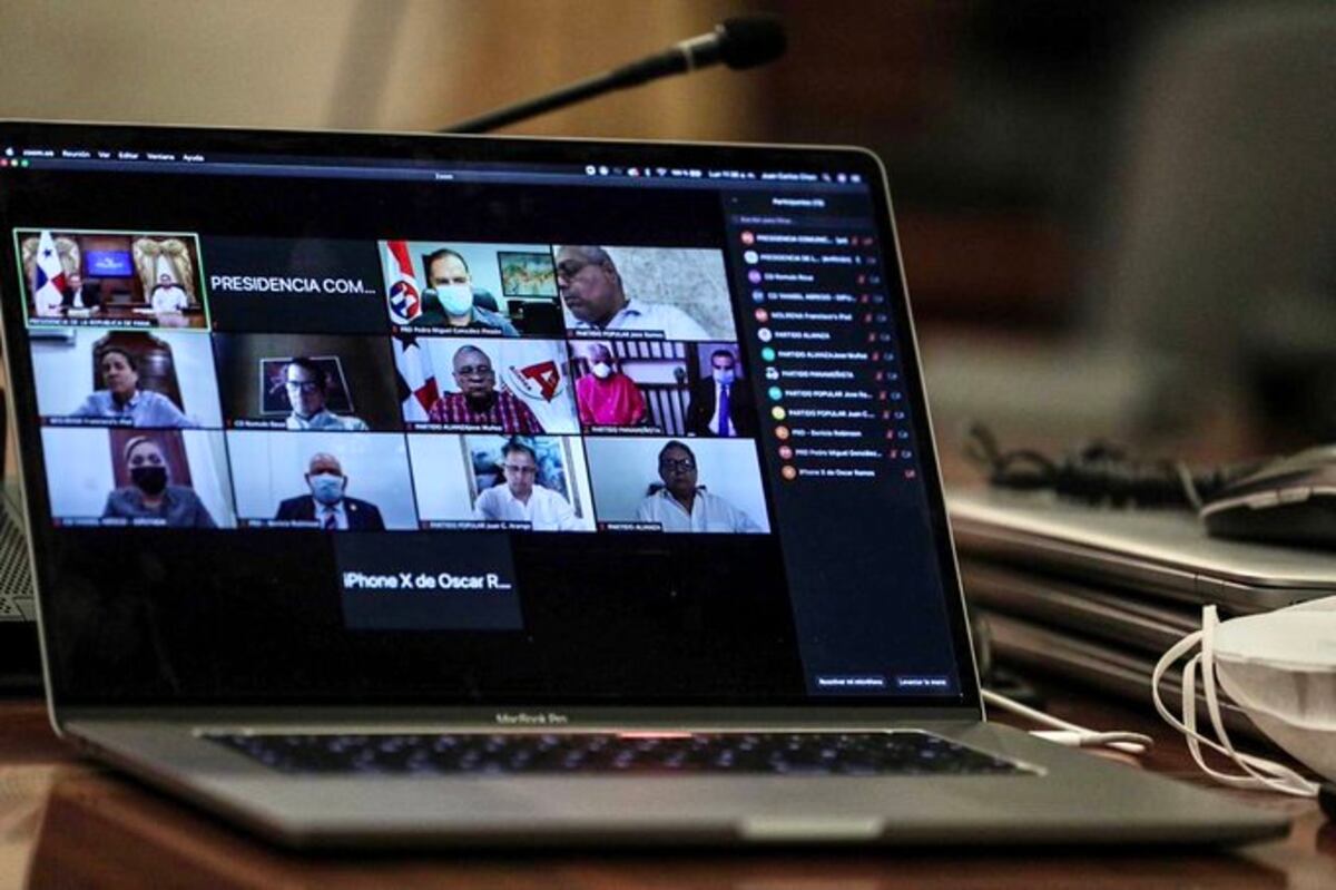 Con algo de retraso a lo previsto, el presidente de la República, Laurentino Cortizo y su vicepresidente, José Gabriel Carrizo, iniciaron un encuentro virtual con los directivos de los partidos políticos y sus secretarios.