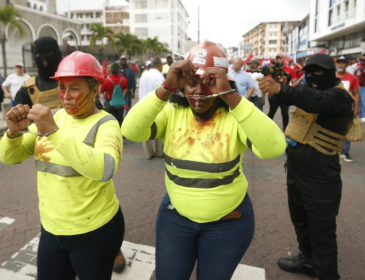 Los manifestantes, entre ellos miembros del Sindicato Único de los Trabajadores de la Construcción y Similares (Suntracs), se concentraron a eso de las 4:00 p.m. en el Parque Porras, en la avenida Perú, en Calidonia, desde donde partieron hacia la Plaza 5 de Mayo.