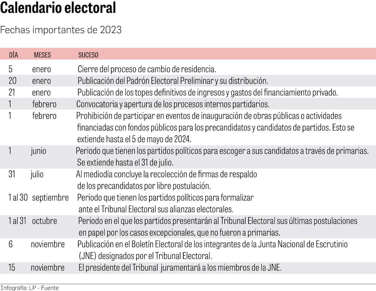 Según el calendario electoral establecido por el Tribunal Electoral (TE) [Decreto No. 29 del 30 de mayo de 2022], los meses más movidos serán febrero, junio, julio y septiembre.