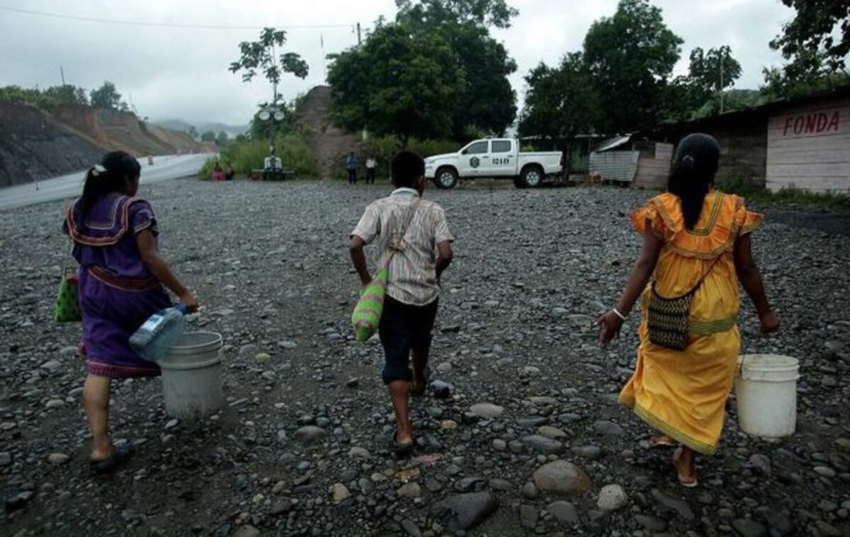 En un improvisado campamento esta tarde preparaban la tradicional bebida de cacao, la cual consumen con plátano salcochado.