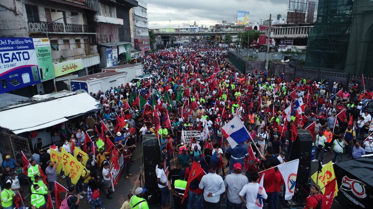 Gremios magisteriales, como la Asociación de Profesores de la República de Panamá; sindicales, entre ellos el Sindicato Único de Trabajadores de la Construcción y Similares (Suntracs) y estudiantes universitarios marcharon desde el parque Porras hasta la Asamblea Nacional para exigir la rebaja del combustible y del costo de la vida.