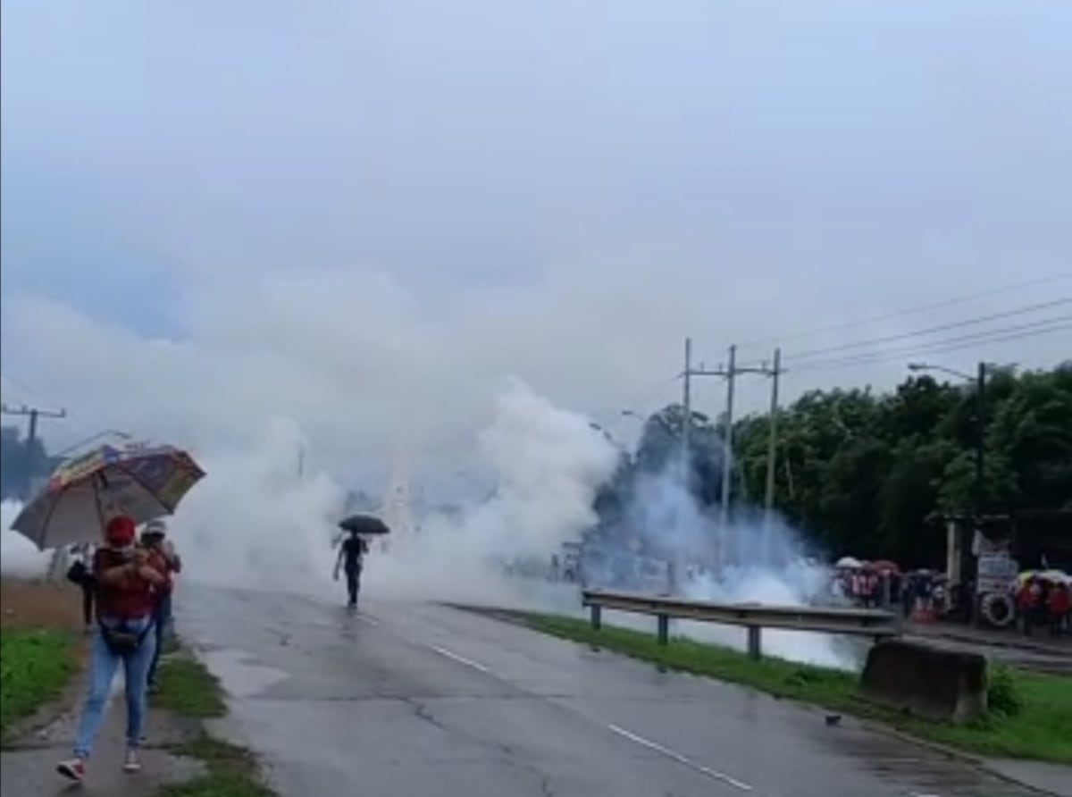 Cuando los docentes se disponían a cerrar la vía, fueron dispersados con gases lacrimógenos y gas pimienta.