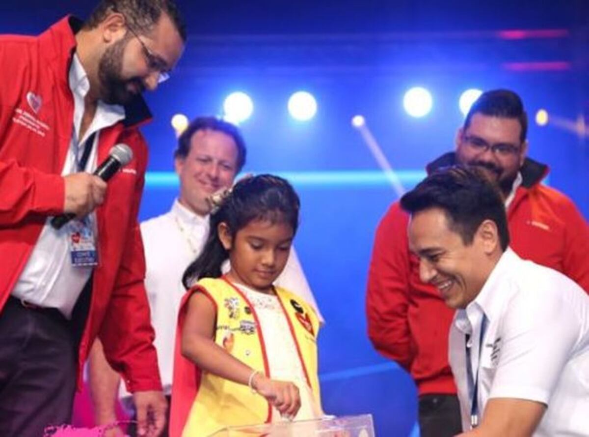 El Teletón 20-30 de este año comenzó con el aporte simbólico de un dólar de la niña símbolo de 2018, Mayuri Lisbeth Moreno.