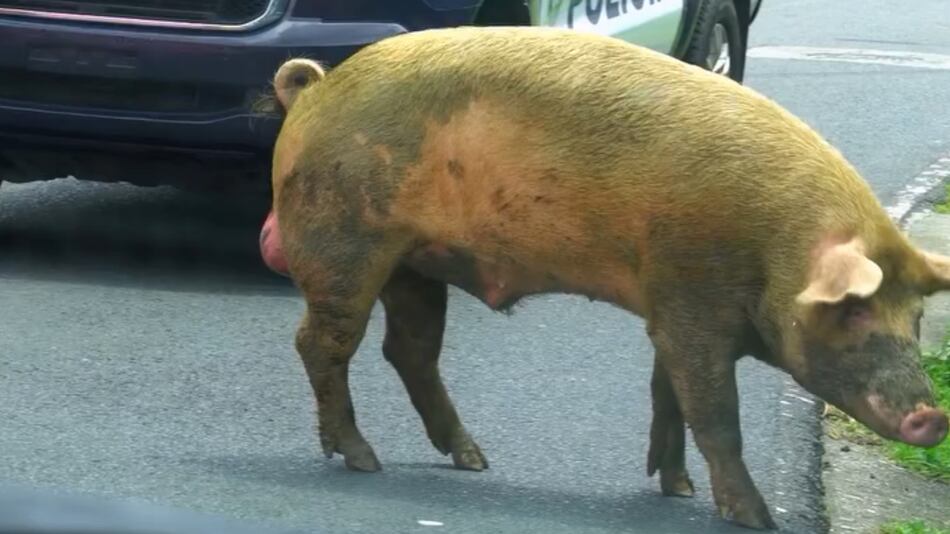 Las imágenes compartidas en Instagram muestran a uno de estos cerdos caminando en plena calle, interrumpiendo el tráfico vehicular mientras una patrulla de la Policía Nacional estaba en el lugar.