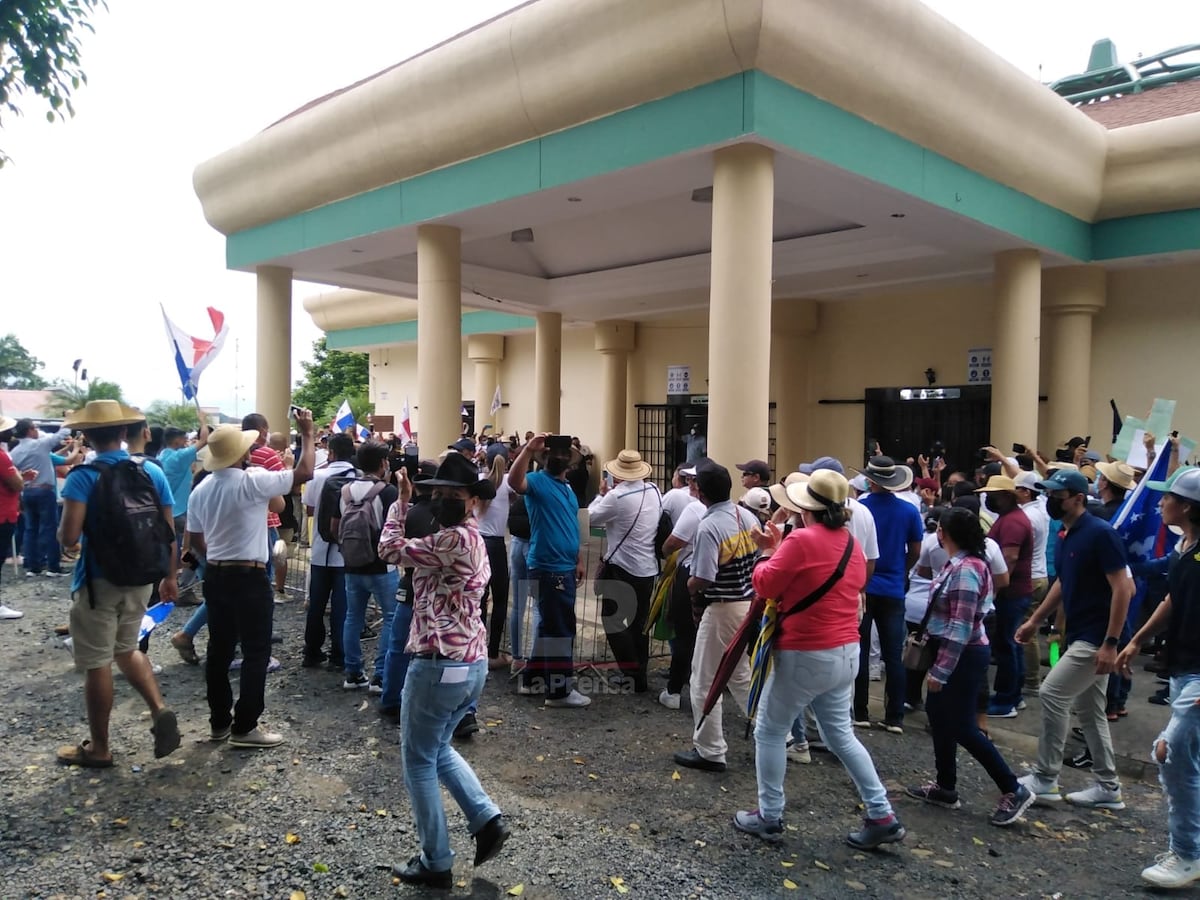 Un grupo de manifestantes violó la tarde de este lunes 11 de julio el cordón de seguridad y se acercó a la entrada del centro de convenciones de Coopeve, en la ciudad de Santiago de Veraguas para exigir respuestas al presidente Laurentino Cortizo.