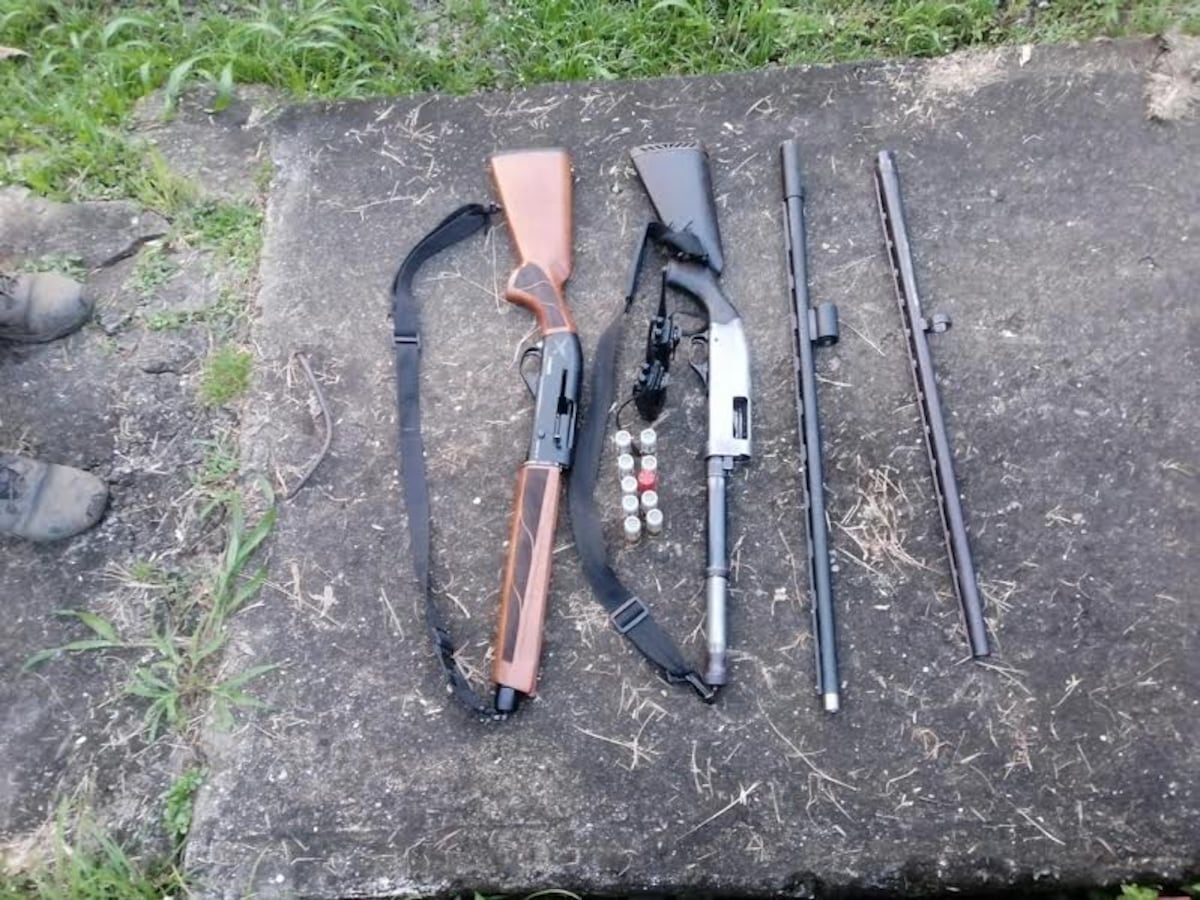 Al momento de su captura, los aprehendidos tenían en su poder dos escopetas, 26 municiones sin detonar, cinco radios de comunicación y estaban acompañados de dos perros de caza.